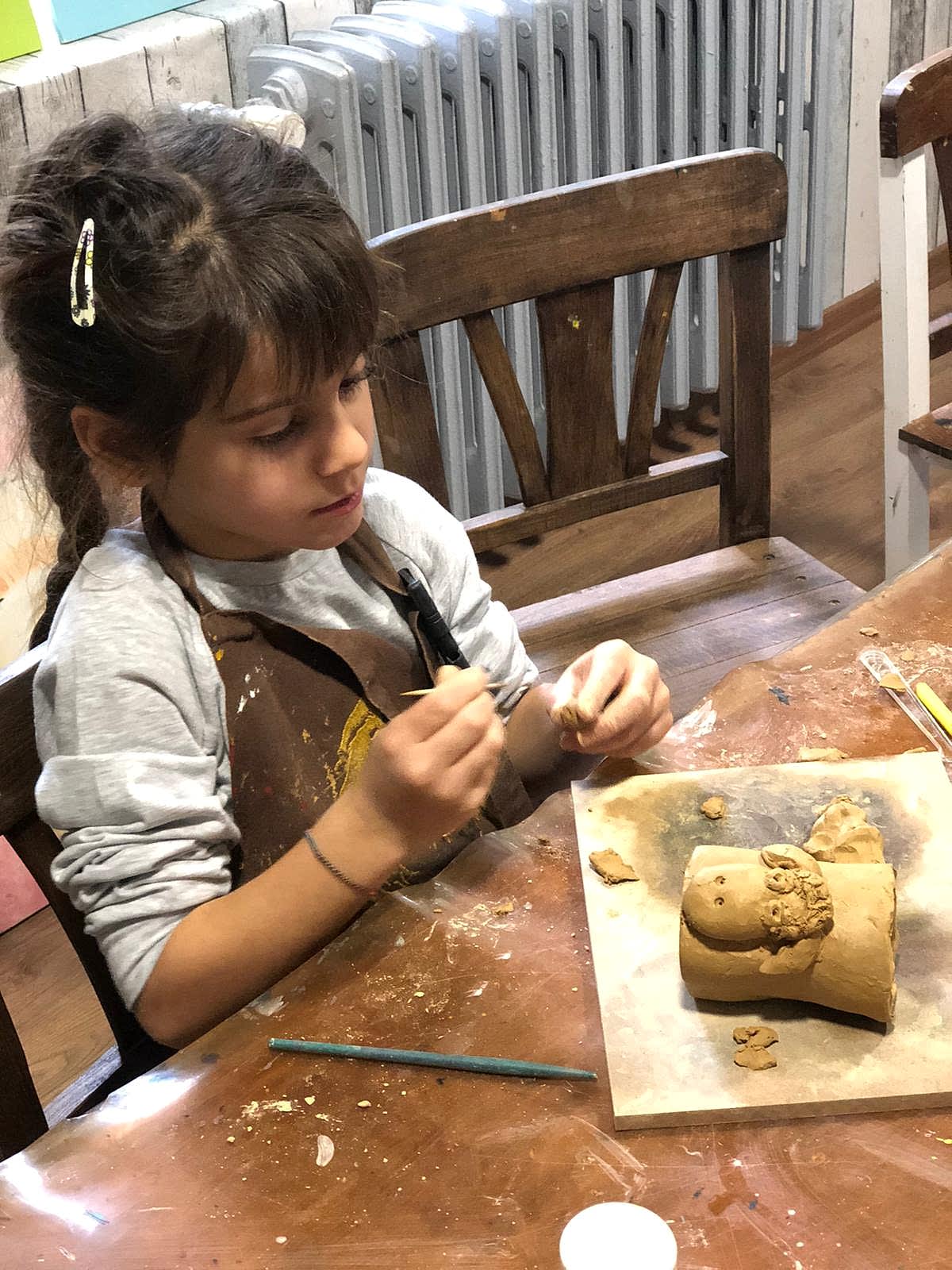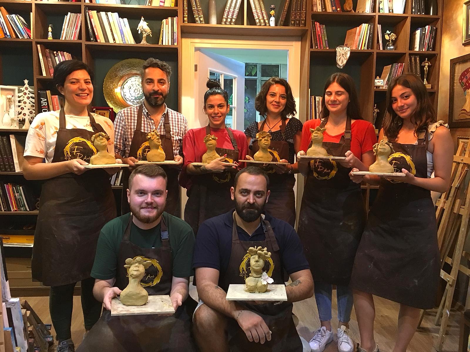 Sanatın 3. Boyutuna doğru yolculuğa çıkmak isteyen heykel tutkunları için hazırladığımız heykel kursu eğitim programını mutlaka denemelisiniz. Hafta içi iş çıkışı (akşam) yada hafta sonu öğleden sonra devam eden heykel kurslarımız katılımcının istek ve hedefine özel hazırladığımız yıllık programla, ilham vermesi için hazırlanmış heykel atölyesinde keyifli müzikler eşliğinde ortalama 3 saat olarak ilerlemektedir. Heykel atölyemizde yetişkin katılımcılarımız sırasıyla, geometrik şekillendirme, oran-orantı, objeden ölçü alma, perspektif eğitimi alabilmekte temel eğitimi tamamladıktan sonra kendi özgün ürünlerini üretebilmektedir. Heykel derslerimiz çocuk öğrencilerimizde resim kursu içine entegre edilirken, yetişkin öğrencilerimiz için ayrı grup ve saatler mevcuttur. Günlük hayatın stresinden ve monotonluğundan sizi uzaklaştırırken, görmeyi, hissedip şekillendirmeyi hatta bir süre sonra kendi tasarımlarınızı ortaya koyabildiğiniz ve tüm bunları edinirken sosyalleşebileceğiniz grup derslerimize herkes katılabilir. Butik gruplarla olan heykel kurslarımızda eğitmenlerimiz her katılımcımıza birebir ilgiyle heykelin geçmişten günümüze tarihine ve örneklerine değinerek, heykel yapma tekniklerini ana malzemesi olan kil ve farklı malzemelerle kazandırmaktadır. Haftada bir gün devam eden heykel kurslarımızı hafta içi iş çıkışı eğitim almak isteyen katılımcılarımız çarşamba akşamları 19.00 grubuyla devam ederken hafta sonu gündüz tercih eden katılımcılarımız Pazar günleri 14.00 grubunu tercih edebilir.